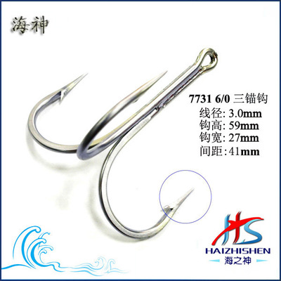 海神 7731 6/0 不銹鋼特大號(hào)三錨鉤…
