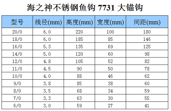 產(chǎn)品名稱:不銹鋼魚鉤7731大三錨鉤