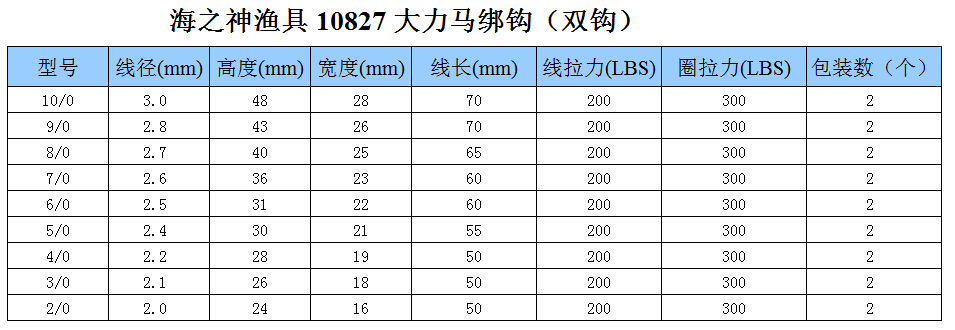海神 10827 10/0 大力馬線鐵板鉤 雙綁鉤 海釣鉤 2個(gè)/包