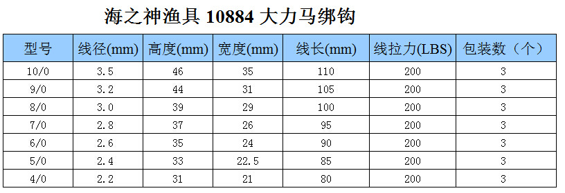 下一篇: 海神10884 10/0 大力馬線魚鉤 大力馬線鐵板鉤 海釣鉤 綁線鉤帶圈